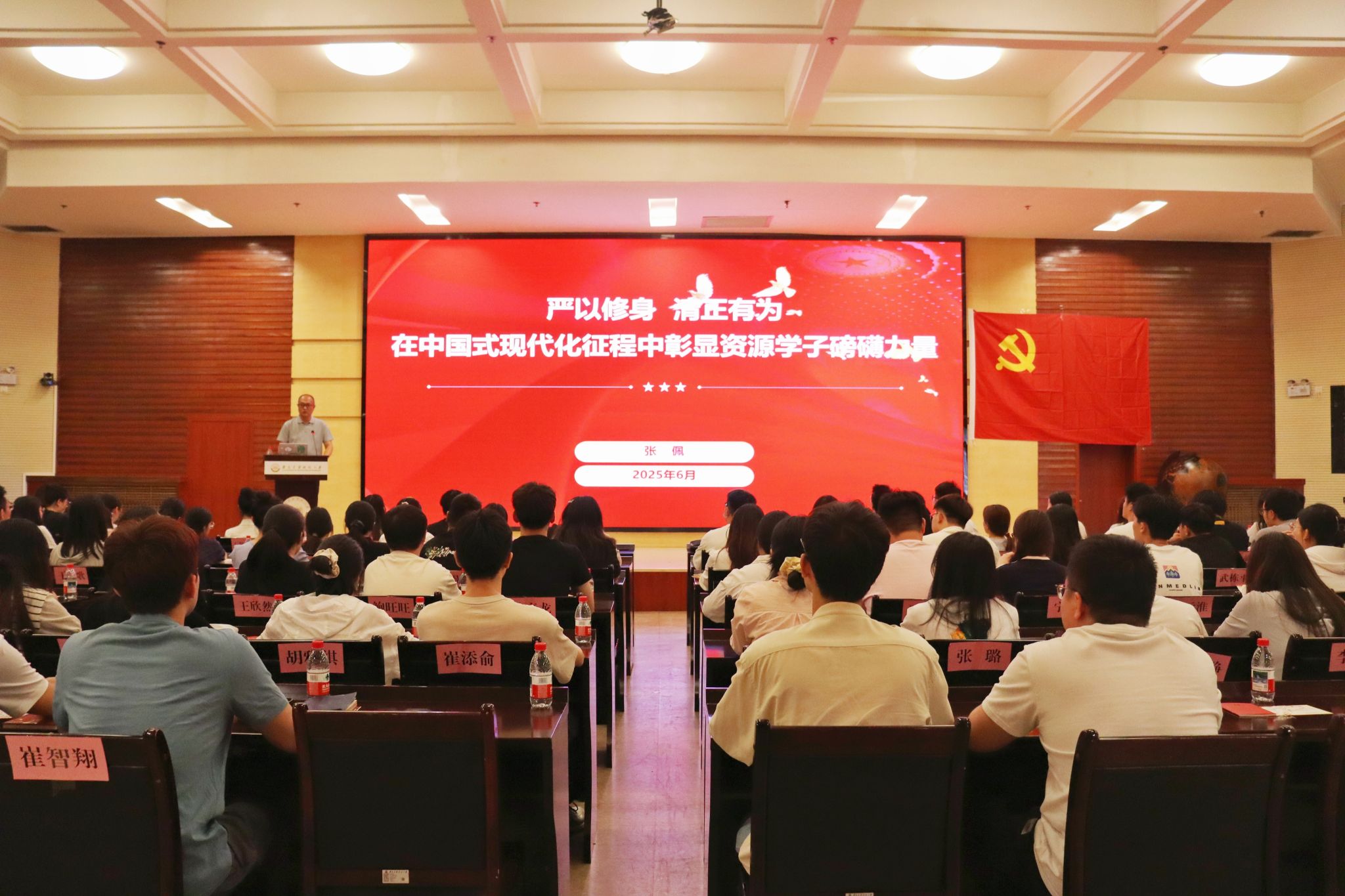 为推动深入贯彻中央八项规定精神学习教育走深走实,强化毕业生党员纪律教育,6月11日,资源工程学院党委书记张佩为学院2025届全体毕业生党员讲授专题党课。
